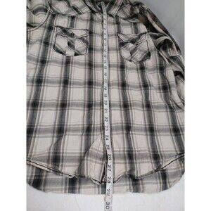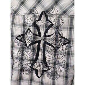 Mens Buckle BKE Shirt Black Label Thick Stitch Cross Embroidery Sz M Gray Plaid