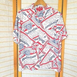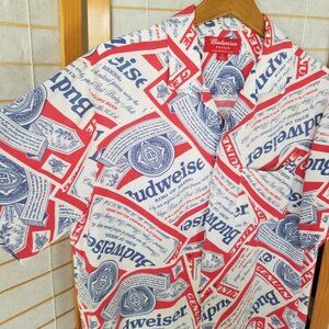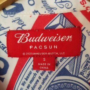 PACSUN X Budweiser All Over Print Short Sleeve Button Up Shirt Mens Small Rayon