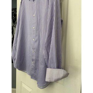 You'll look so stylish in this purple striped designer shirt. Looks great with jeans or a suit. No tags but never worn. 16 1/2 34/35