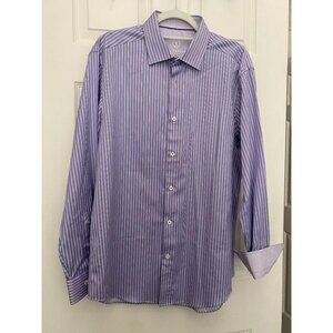 Men's Bugatchi Uomo purple striped button down dress shirt 16 1/2