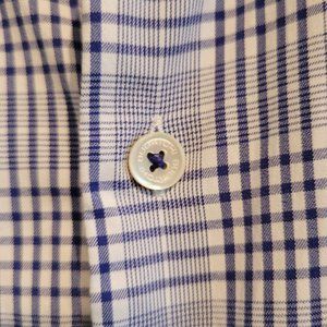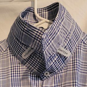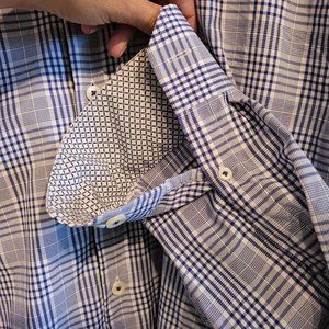 Men's Bugatchi shaped fit button up- Navy/White plaid pattern- Size XXL