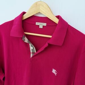Men’s Burberry Brit Long Sleeve Cotton Polo Raspberry Pink Shirt XX