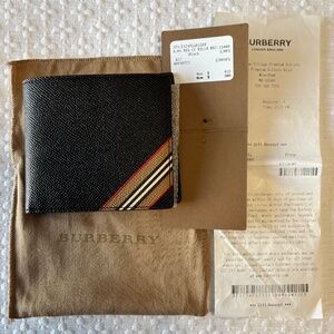 NEW authentic mens Burberry Icon Stripe bifold wallet with eight card slots, comes with dust bag, tag, and receipt.