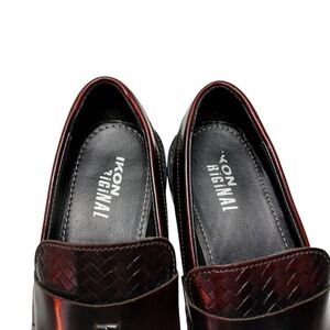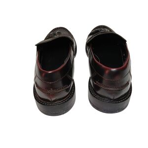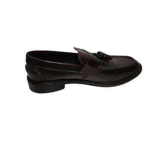Sophisticated burgundy loafers with black detailing. Features elegant tassels for a refined look. Ideal for formal events.