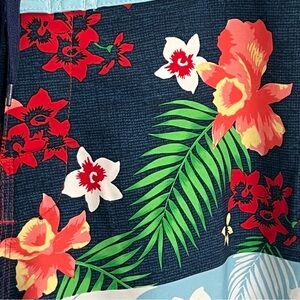 Men’s Burnside Board Shorts Swim Trunks Size 32 Stretch Hawaiian Print Zip Pocket