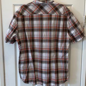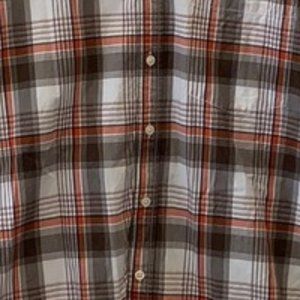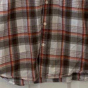 🍂 Men's Old Navy Sienna Brown White Plaid Tartan Button Up Short Sleeve Shirt