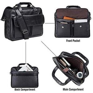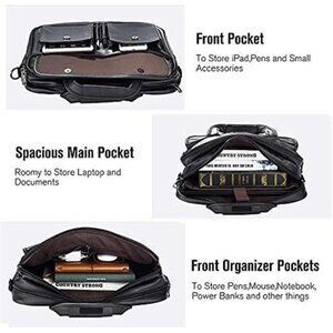 ✅LARGE CAPACITY - The men laptop briefcase includes external 2 pouches & 2 pen slots and inside several slots in front large pocket with adhesive hook and loop under flap over, storage penholders, documents, binder, power cords, mouse, 2 main zipper Pocket with foam padded sleeve fits most 17. 3 Inch laptop, back invisible zipper pocket for your valuables