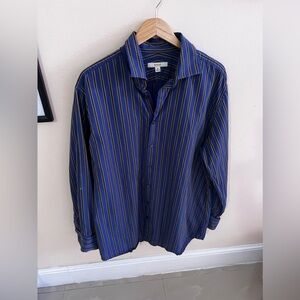 Men’s Button Down Dress Shirt - Size XL blue / brown stripes shirts