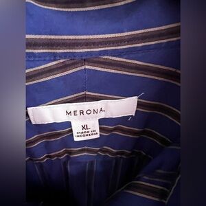 Men’s Button Down Dress Shirt - Size XL blue / brown stripes shirts cotton made in Indonesia