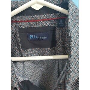 Mens Button Front Shirt Xl Geometric Print Collared Blu By Polifroni Lightweight