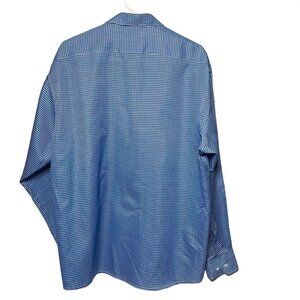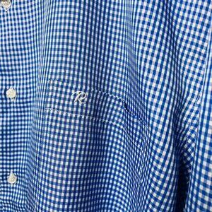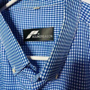 Mens Button Up Dress Shirt Blue Gingham Top Size XL Roundreason