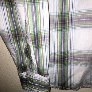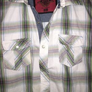 Green red and white checkered button up shirt. Buttons are snap on and a white color please see picture. Men's size XL
