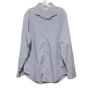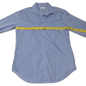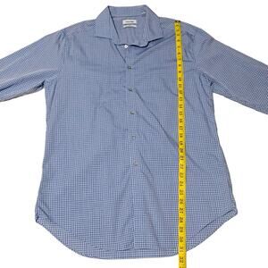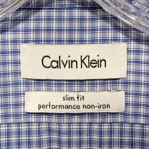 Men's CALVIN KLEIN Shirt Slim Fit 17.5 34/35 Performance Non-Iron Button Down in small blue plaid. 100% cotton. Good pre-owned condition.