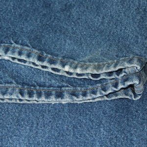 Lightly Distressed Straight Leg. Gently used, very good condition with very mild wear to pant leg hems without fray.