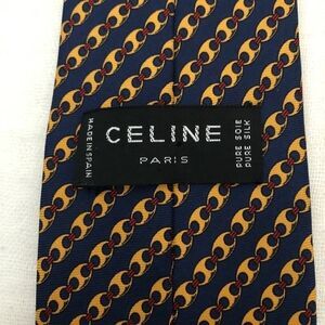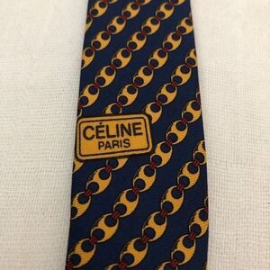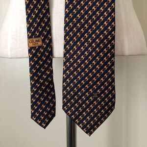 Preowned CELINE Paris Yellow/ Navy Blue tie