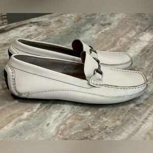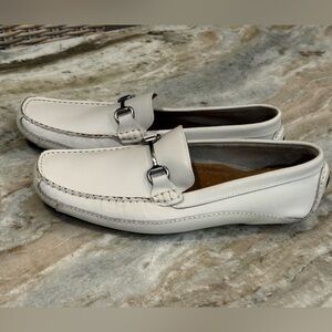 Men’s CLARKS White leather buckle loafers- Size 12. Made in Brazil. Excellent, used condition. Little to no signs of wear. See all photos. Smoke free home. Fast shipping