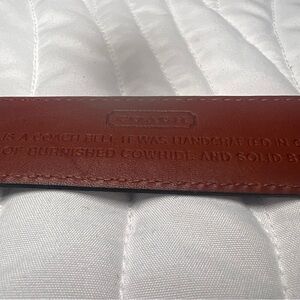 Sophisticated Dark Brown cowhide belt by Coach. Features durable craftsmanship. Solid brass hardware