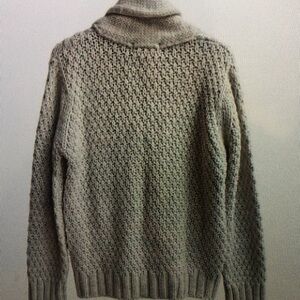 Stay warm and stylish with this men's cable knit cardigan sweater. The cream color adds a classic touch to any outfit. Perfect for layering during cooler months.