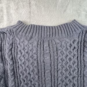 Mens Cable Knit Sweater Gray SZ L Ribbed Waffle
