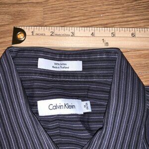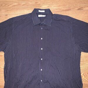 Mens Calvin Klein 18 34/35 Black Blue Stripped Button Down Shirt Long Sleeve