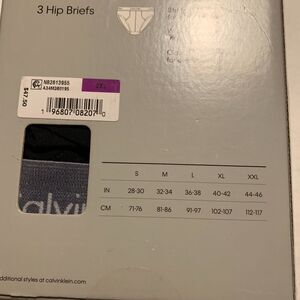 Elevate your underwear game with this Calvin Klein 3-pack cotton stretch hip briefs in classic black underwear body with different colored pastel bands. The solid pattern, XXL size, and comfortable cotton blend fabric make these briefs a wardrobe staple for any man. The stretch feature provides a snug fit, while the vintage-inspired design adds a touch of timeless style. Perfect for everyday wear or special occasions, these underwear are a must-have for any fashion-forward man. The pack includes three pieces ensuring you always have a spare on hand. Made in Kenya, these briefs are a high-quality addition to any wardrobe. New in box.