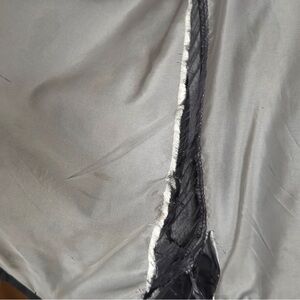 last picture: there is a tear in the lining it is not visible even when coat is open and does not affect the structure or functionality- easy to mend with thred or fabric glue. The coat is priced lower with that flaw in mind.