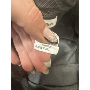 The product is a pair of men's Calvin Klein dress pants in grey, with a size of 36 inches in waist and 30 inches in inseam. These regular fit pants are designed for a stylish and sophisticated look, perfect for professional or dressy occasions. The grey color adds a versatile touch to the classic dress pants, making them easy to pair with different outfits and formal events. Made by the renowned Calvin Klein brand, these pants are sure to provide comfort and style for any man's wardrobe.