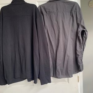 Pre-owned black sweater jacket and dark grey button down shirt from Calvin Klein. Size XXL.