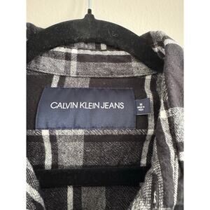 Men's Calvin Klein Jeans Black and Grey Tartan Plaid Flannel size M Preppy Boho