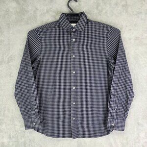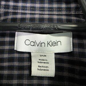 Mens Calvin Klein Navy & Gray Plaid Shirt Long Sleeve Button Down Size S