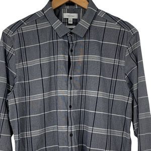 Mens Calvin Klein Plaid Body Fit Shirt Large Navy Snap Closure 3744 EUC Stretch