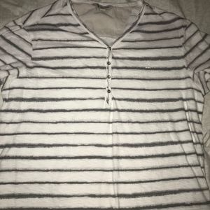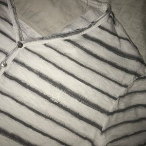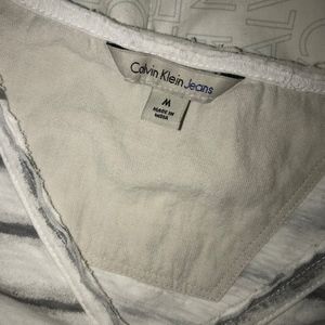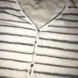 Men's Calvin Klein T-Shirt Button Up V Neck Medium White & Gray Striped