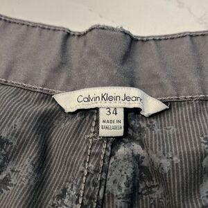 Men's Calvin Klein Jeans Grey Shorts, Size 34. Shorts feature front zipper with one button closure and 5 pocket design. Shorts are in EUC with no rips, tears, stains or holes. Smoke and pet free home (2224*#)