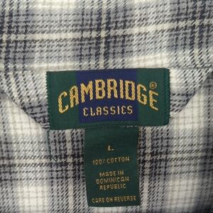Men's Cambridge Plaid Button Down Flannel Sleep Shirt Gray Size L casual 90s