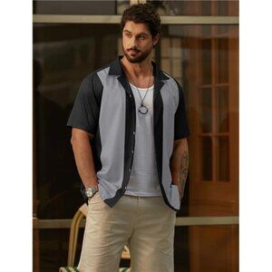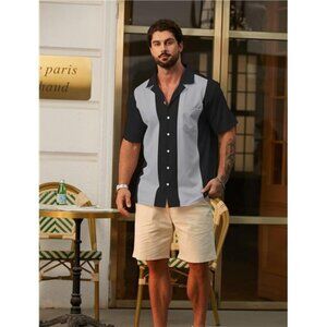 Men's Camp Collar Retro Vintage Bowling Button Down Shirt with Pocket Casual