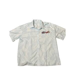 Men's Camp shirt lightweight Dr. Pepper white/light blue tropical leaf print LG