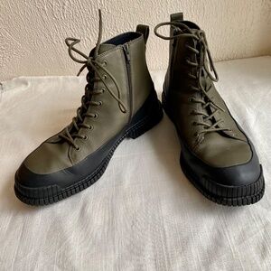 Men's Camper Pix olive and black lace up ankle boots with zipper Size 11/ EU 45