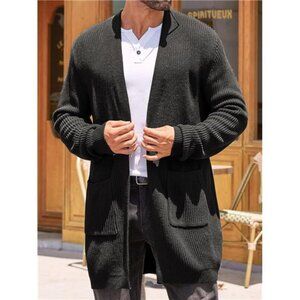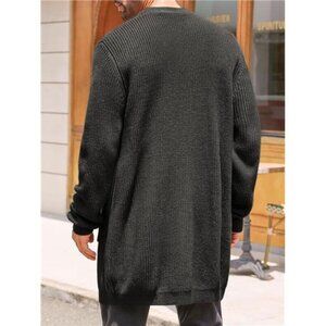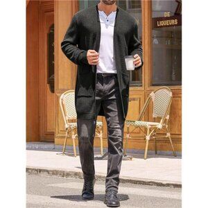 Men's Cardigan Sweater Casual Cable Knit V Neck Open Front Ribbed Long