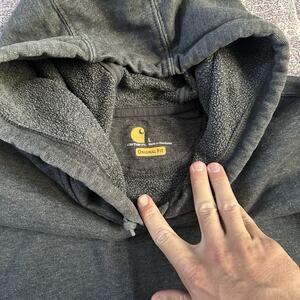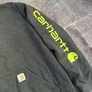 Men's Carhartt Dark Heather Gray Sleeve Spell Out Work Hoodie Sweatshirt Sz L