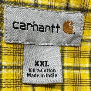 Men's Carhartt Lightweight Yellow Plaid Cotton Button Up Shirt Size XXL. This shirt is made of 100% Cotton. Made in India. Machine Washable. This shirt is in excellent condition. There are no rips, tears, stains or damage. Ships from a Smoke Free Home. Any questions, please ask. All reasonable offers welcome.