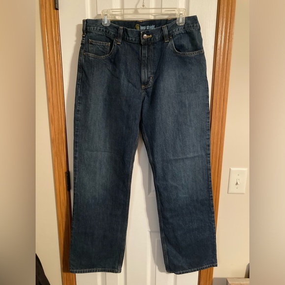 Loose Straight fit 34x32 Excellent condition No stains, holes, or rips Smoke and pet free home