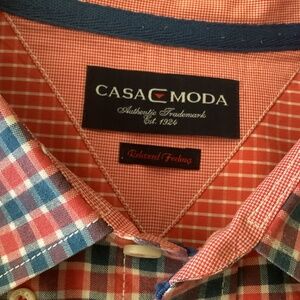 Men’s Casa Moda Long Sleeve Multicolor Plaid Button Down Shirt Size XXL Tall