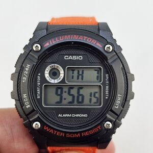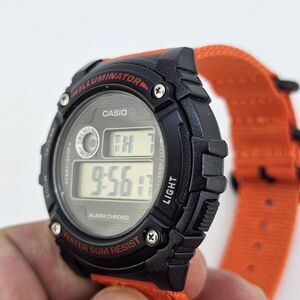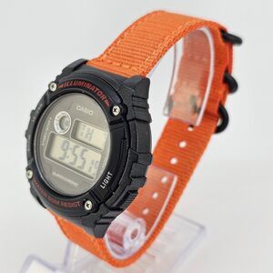 Men's Casio Watch 42MM Digital Day Date New Orange New Black Canvas Band Straps