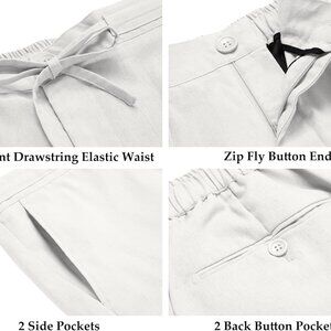Features: Light and breathable linen-cotton blend suit with a classic yet relaxed fit. Includes a stylish 2-button blazer with notch lapel and flap pockets, plus comfortable straight-leg pants with an elastic waist and adjustable drawstring. Perfect for creating a handsome, laid-back look or dressing up for semi-formal occasions.