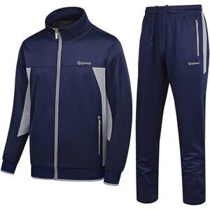 Men's Casual Athletic Tracksuit Long Sleeve Sweatsuit Set FullZip Running Jacket