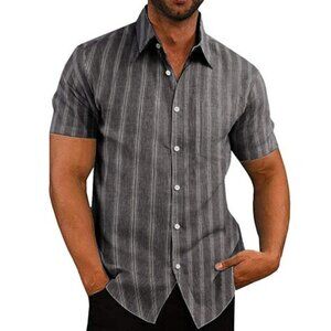 Men's Casual Button Down Shirt Chambray Stripe Small
