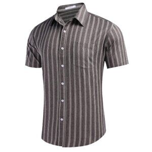 COOFANDY Men's Casual Button Down Shirt Chambray Stripe Small Moon Gray Stripe