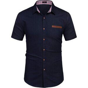 Men's Casual Cotton Short Sleeve Button Down Dress Shirt Plaid Collar