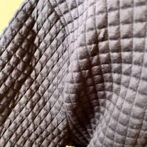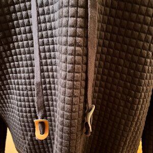 - The body of the sweatshirt is marked with small quilt-like squares.