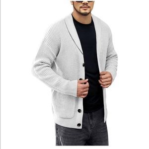 Mens Casual Shawl Collar Cardigan Button Loose Fit Knitted Sweater with Pockets
